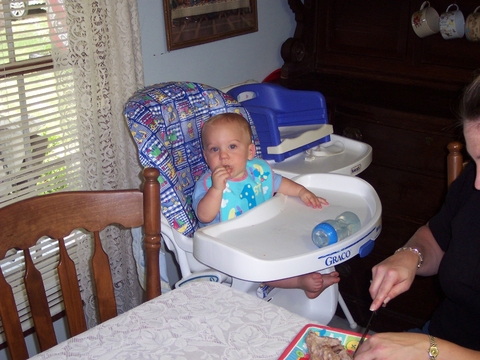 Andrew eats one of Grandaddy's ribs.