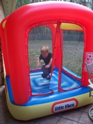 Andrew playing in the new "jump house" that Granddaddy gave him for Christmas.