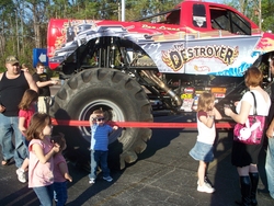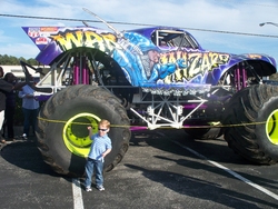 Grave Digger is Andrew's favorite monster truck. This is Andrew and Dennis, one of Grave Digger's drivers. Andrew got an autographed picture, also, which he is holding, along with his Grave Digger toy, in this photo.
