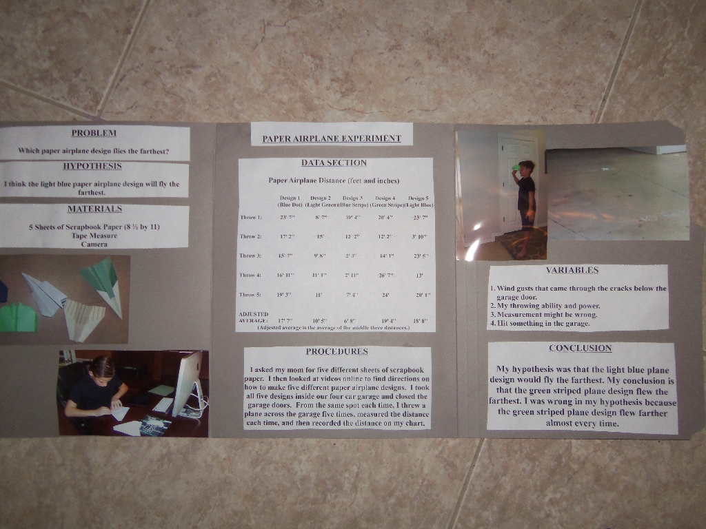 School science project comparing different types of paper airplanes.