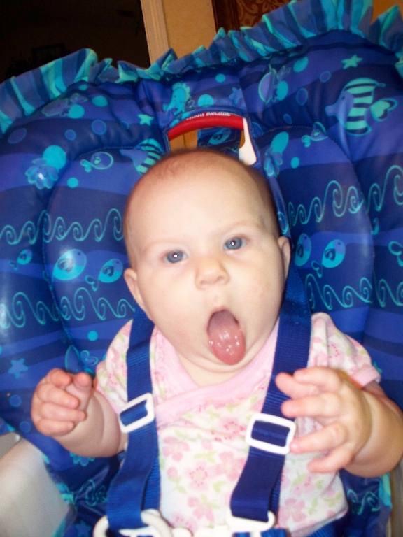 This is how Gracie tells us she wants another bite of baby food. It's pretty funny to see and mom and Andrew call it Gracie's "rock star" face.