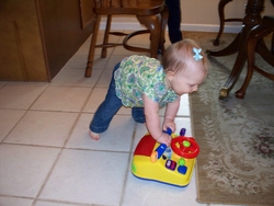 Sat 13 Mar 2010 08:14:43 AM Gracie likes to push Andrew's old walk-behind car as well as her baby stroller. |