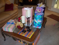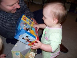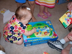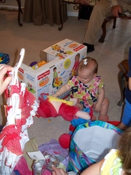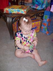Wed 24 Mar 2010 07:20:27 PM Mom, Dad, and Andrew gave Gracie gifts on the night of her birthday. |