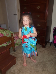 Fri 08 Mar 2013 03:06:17 PM Gracie models new Thomas the Tank Engine clothes. |