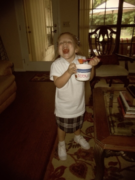 ![]() Fri 23 Aug 2013 01:57:19 PM Mom bought Gracie a frozen yogurt treat to celebrate her fist week of Pre-K4. |