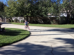 10/24/2017, Gracie riding bicycle without training wheels.